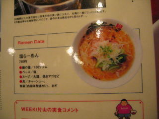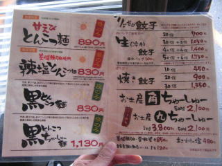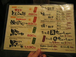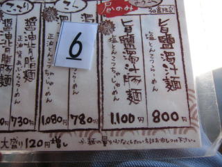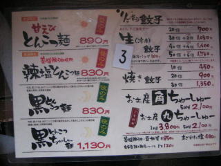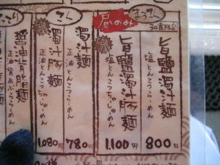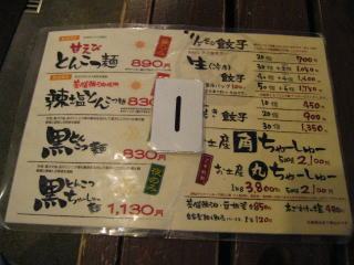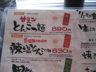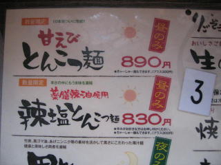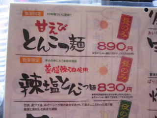 レギュラーメニューの写真は以前撮った物です、「塩とんこつ麺」にするか「辣塩とんこつ麺」にするか迷います。