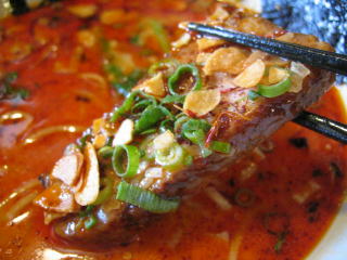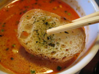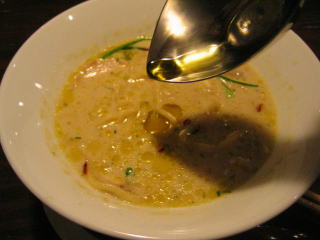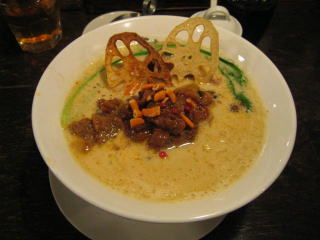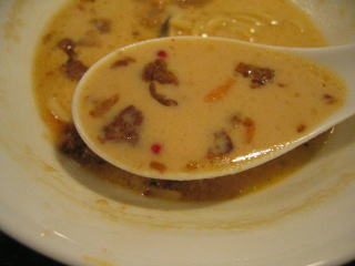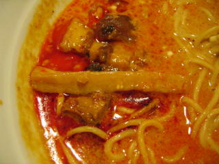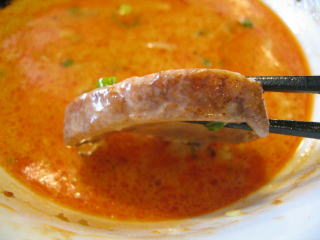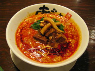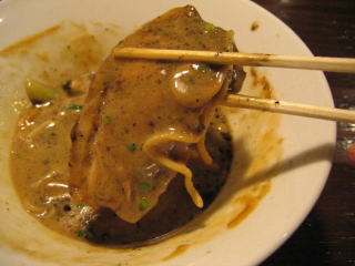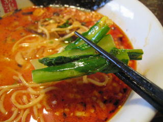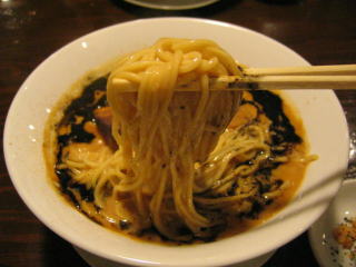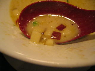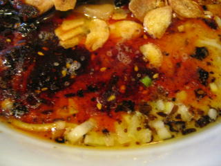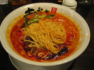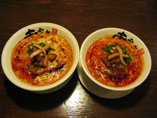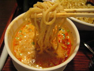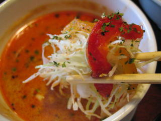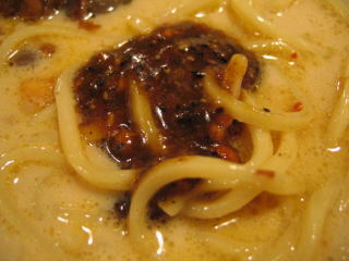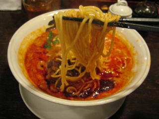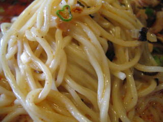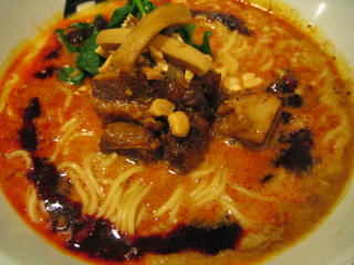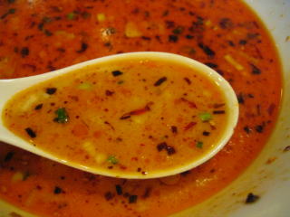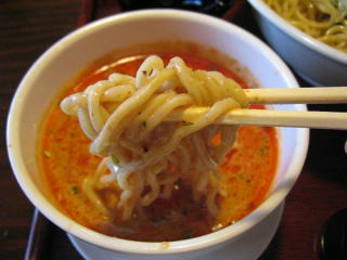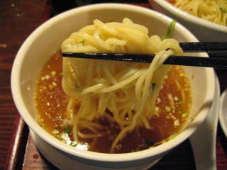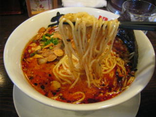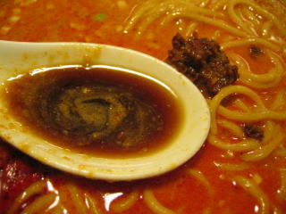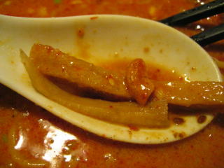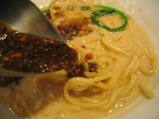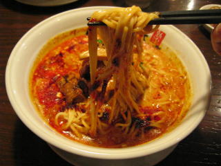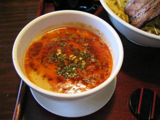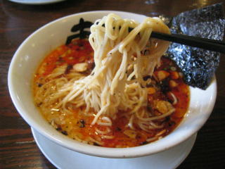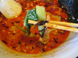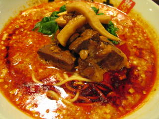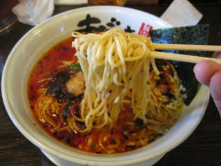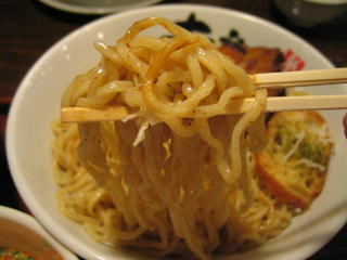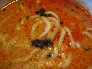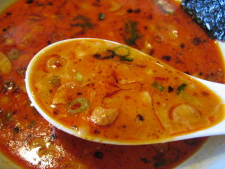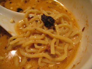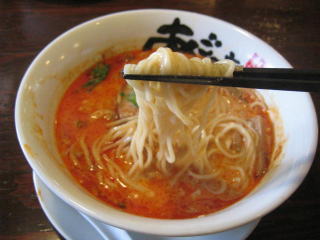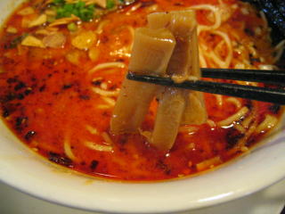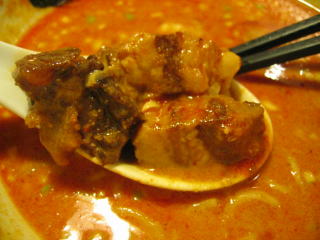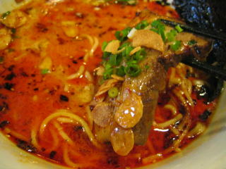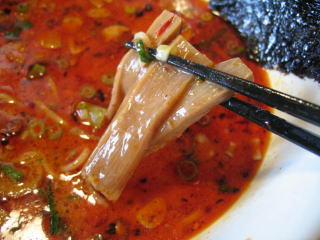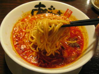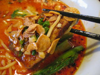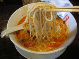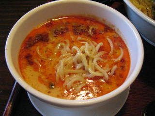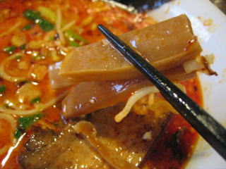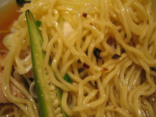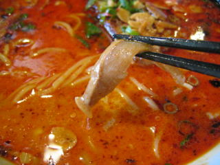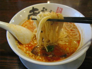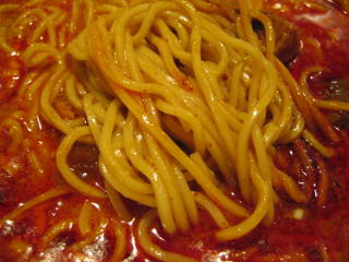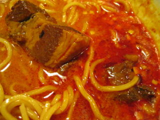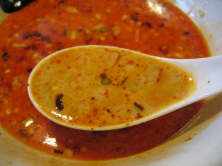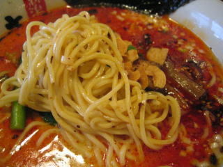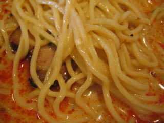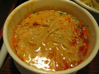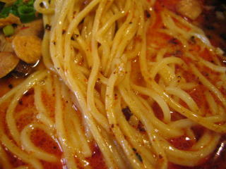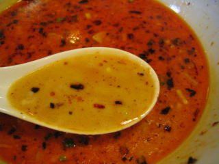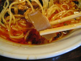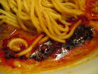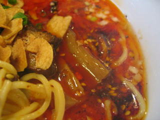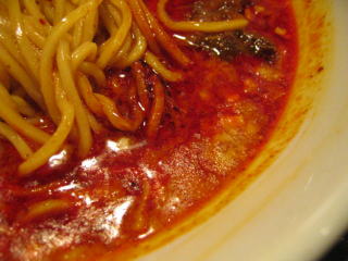 こちらは辣油が強調される鶏ベース、赤みが濃くてちょっと辛く感じます。