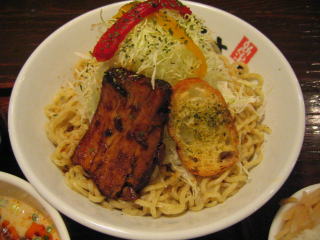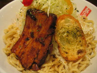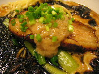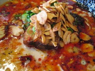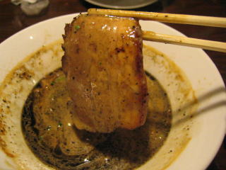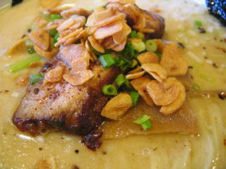 分厚い炙りチャーシューの上にポテッと載っているのが「ニンニクソース」らしい。