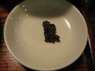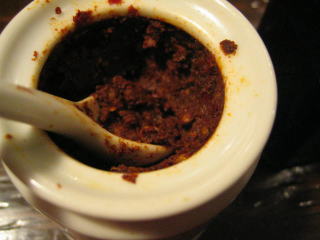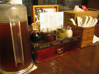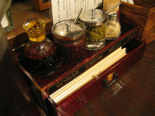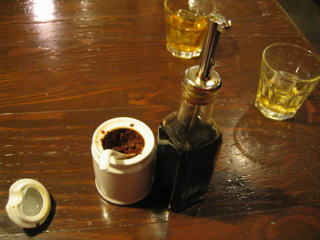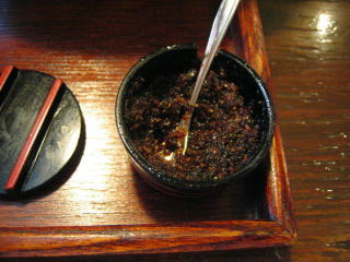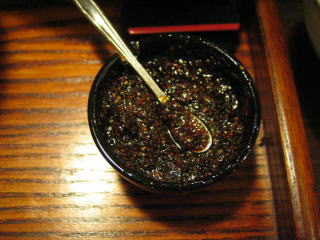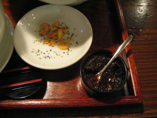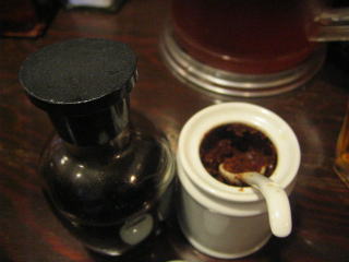 薬味の山椒味噌、黒酢です。