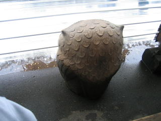 並んだ場所は外のベンチのふくろうさんの後ろ辺りです。