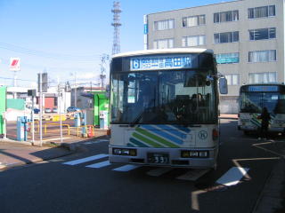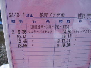 直江津駅前発午前10時45分のバスに乗ります。