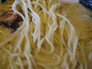 麺は中太麺、ドロっとした濃厚豚骨スープが良く麺に絡みつきます。