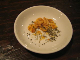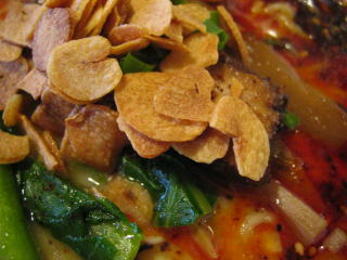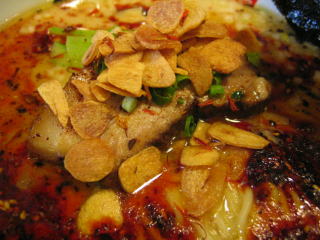 色々悩んで「辣塩とんこつ麺」830円のニンニクチップ多目にしました。