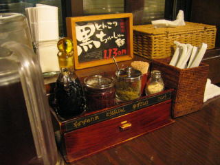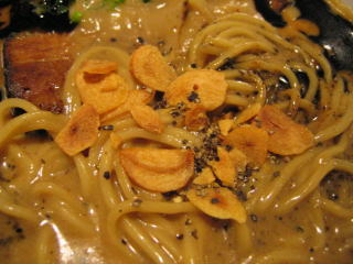 「塩とんこつ」売り切れ、「しょうゆとんこつ」か「ごまからとんこつ」か悩み、結局「ごまからとんこつ」の普通盛にしました。