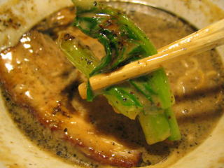 シナチク、炙りチャーシュー、青梗菜。