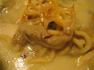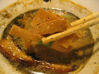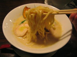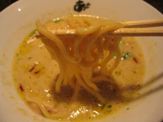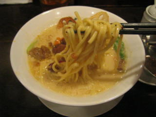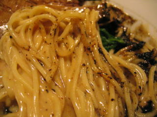 麺は中太いストレート麺ですが、スープが濃厚なため良く絡みます。