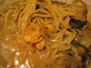 久しぶりの「辛辣塩とんこつ麺」のニンニクチップ多目、普通盛です。
