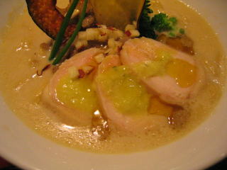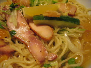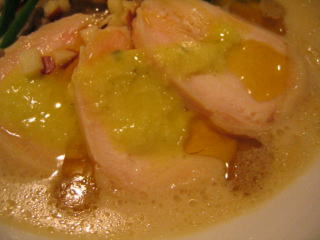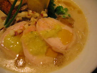 情報によると鶏のチャーシューではなく、ハーブオイルにつけ込んだ鶏のハムだそうです。