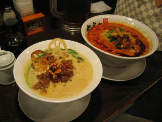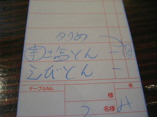 結局、今日は昼のみの「甘えびとんこつ麺」と「辣塩とんこつ麺」大盛にしました。