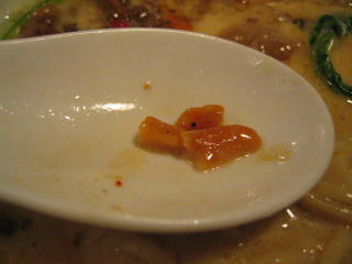 記憶していた辛さより辛くありません、マイルドな塩とんこつにピリッとアクセントが効いて美味しい。