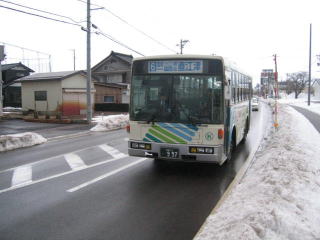 バス停まで1〜2分、12時46分のバスで直江津駅へ向かいます。