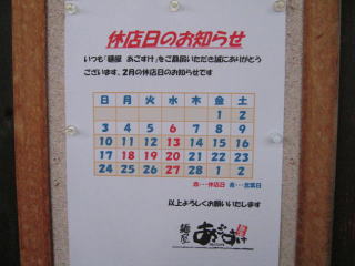 2月は18〜20日が連休です、遠くから行く方は特に気を付けて下さい。