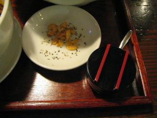 薬味の山椒味噌、黒酢がきました。
