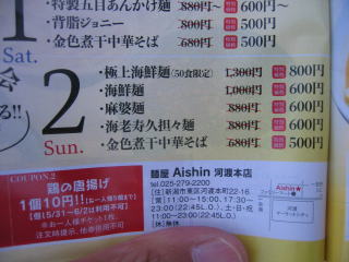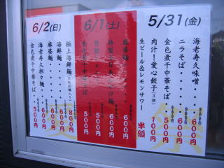 「50食限定の極上海鮮麺(牡蠣入り)1300円→800円」が残っていれば頼むつもりです。