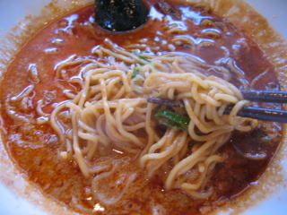 海老寿久担々麺、こちらの麺も細麺です。