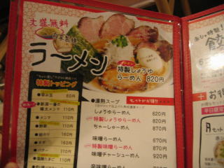 ラーメンのメニューです。