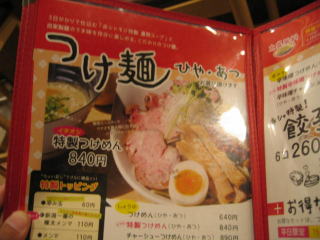 つけ麺のメニューです。