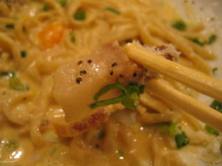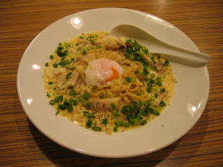 今夜は「米粉ラーメンフェアー」の「玄米米粉のカルボナーラのらーめん」890円です。