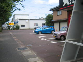 お店の脇に駐車場、反対側の交差点側にも駐車場があります。