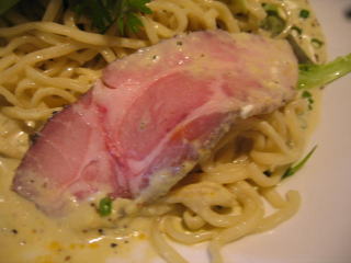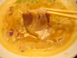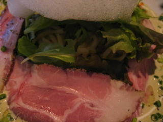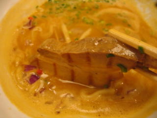 焼目の入ったチャーシューは厚く1cm位ありそうです。