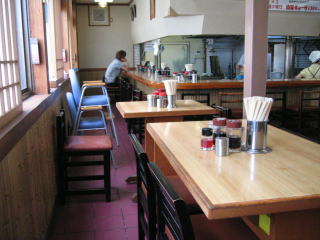 お店奥に厨房、それを取り囲む様にカウンター席、手前側にはテーブル席です。