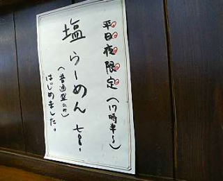 今日こそ、平日夜間限定の塩らーめんをいただきます。