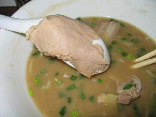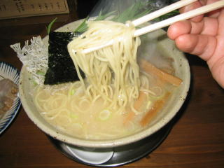自家製麺とのこと、中太麺ストレートですが、妙に四角い麺でした。ちょっと柔らかく、もう少し硬いほうが好きです。