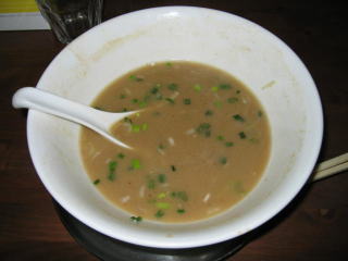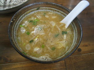 一見しますと、豚骨醤油ですが、ちょっとしょっぱめの魚系の強く出たスープでした。