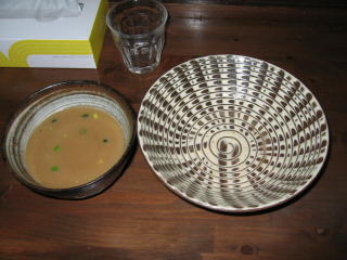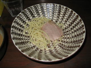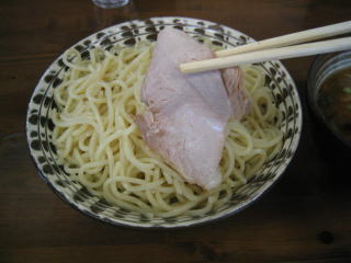 冷たい太麺を暖かいつけだれを絡めていただきます。