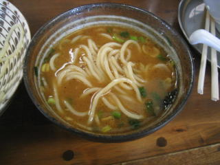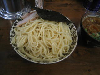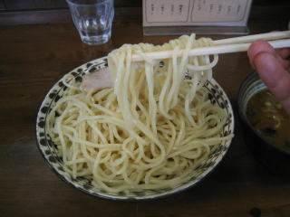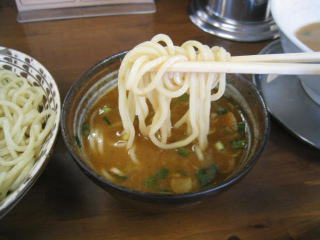 こちらも節の効いた温かいつけダレに太い麺が良く合います。