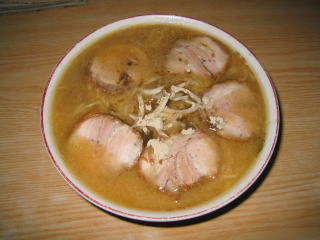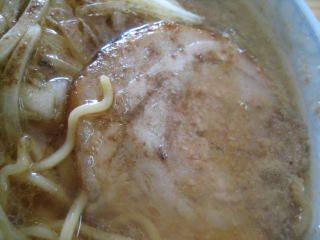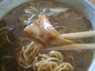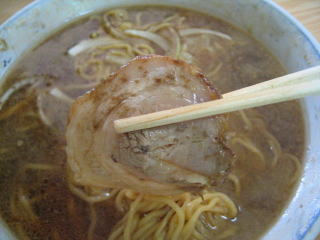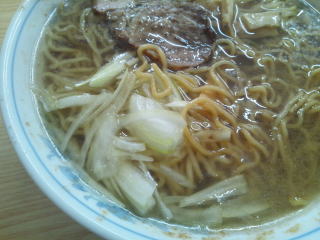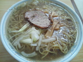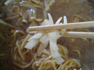 コショウがふってあり、刻んだ玉ねぎ、メンマ、歯ごたえのあるチャーシューが載っています。