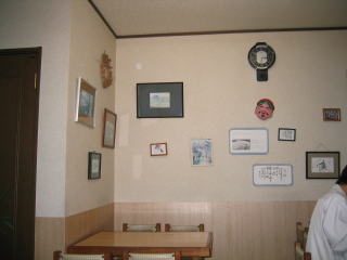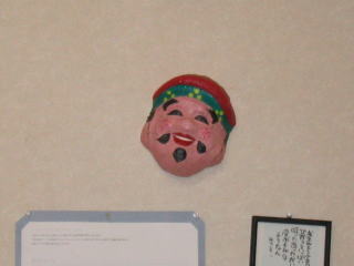 エビスさま!?壁に掛けてあるお面がお店の雰囲気を表しています。