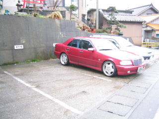 駐車場は3台分空いていました、駐車し歩いて約1分でお店です。