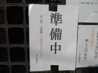 ガ〜ン、「準備中」の張り紙がしてあります。