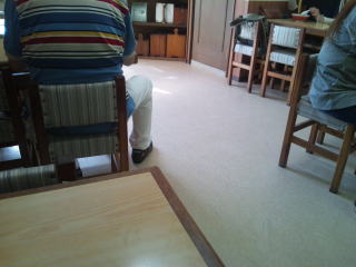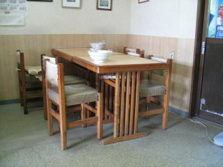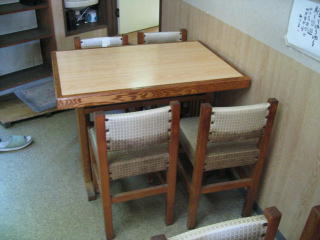 テーブル席は4席、1人が3席、3人が1席で全部テーブルは埋まっています。