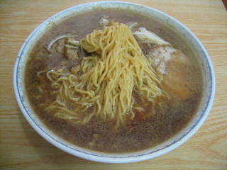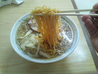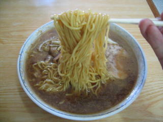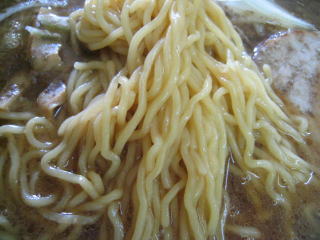麺は中太麺で黄色く、多少縮れています、麺は硬めを頼んでも柔らかめです。