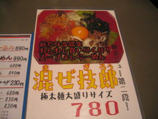 今日はスープなしらーめん「混ぜ技朗 極太麺大盛サイズ」870円と「クリーミー白みそらーめん」890円です。
