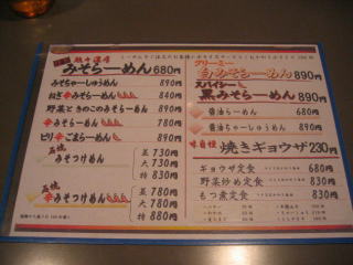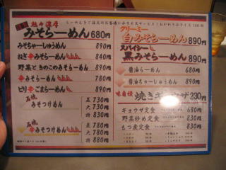 ラーメンメニューもほとんどみそらーめんです。