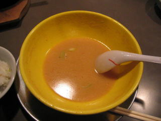 ちょっと甘めの白みそ仕立て、魚介のスープのような感じです。