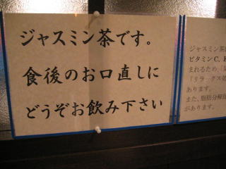 お口直しのジャスミン茶をいただいて帰ります。