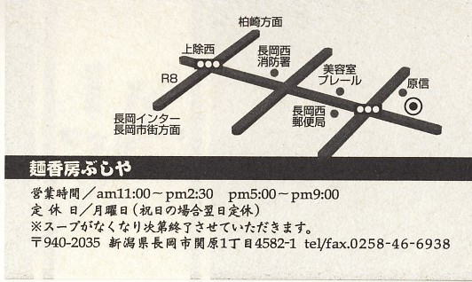 平成21年3月15日、長岡市の「麺香房 ぶしや」さんにお邪魔しました。