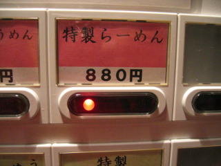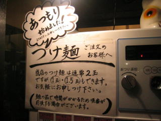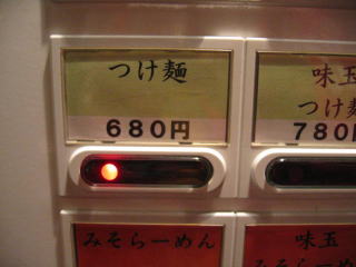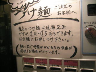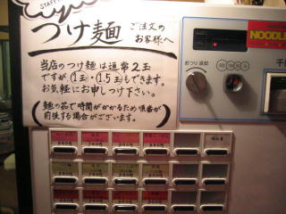つけ麺の券を買ったら店員さんが来て「あと2玉で麺が終了です。」、券売機の「売切」を申し訳なさそうに点灯させました。