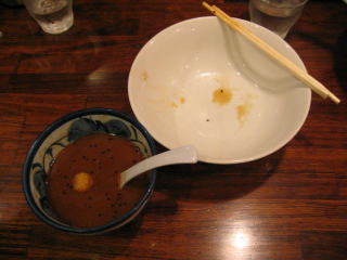 つけ麺は完食、炙りチャーシューの脂身を少し残してしまいました。