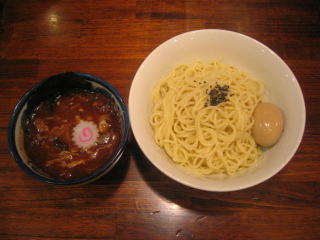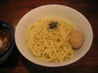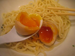 つけ麺が来ました、煮たまごサービスです。