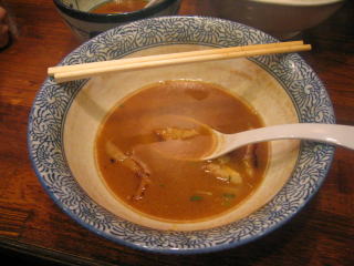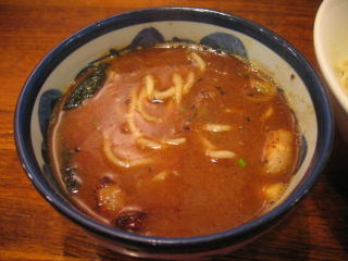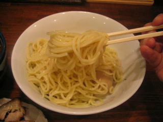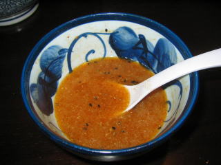 濃厚なざらつくようなつけダレにつけていただきます。
