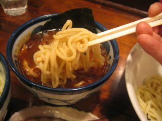 濃厚なつけダレに付けていただきます。