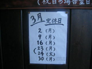 店内は禁煙、基本的には月曜定休日のようです。