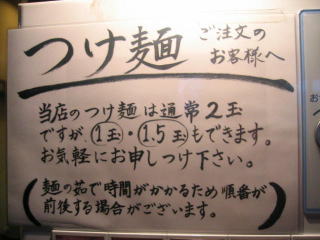 「つけ麺1杯を2人で食べても良いですか?」と聞くとOK、さらにサービスしますよ、とのこと、期待します。