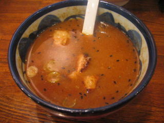 ザラつく位にカツオパウダーが良く効いた濃厚スープです。